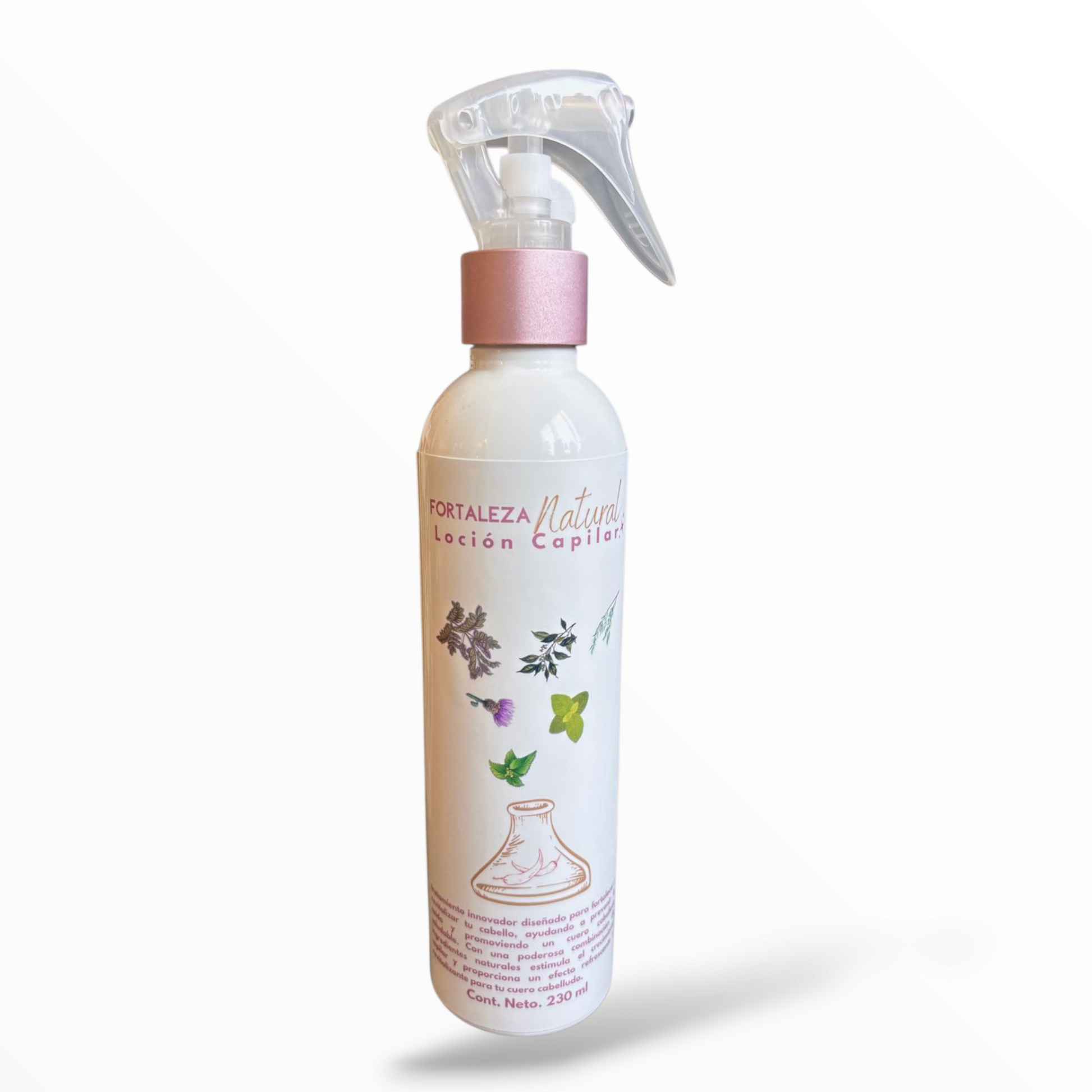 Fortaleza Natural es una loción energizante con extracto de chile, ortiga, que activa la circulación en el cuero cabelludo, estimula el crecimiento y fortalece cada hebra desde la raíz.